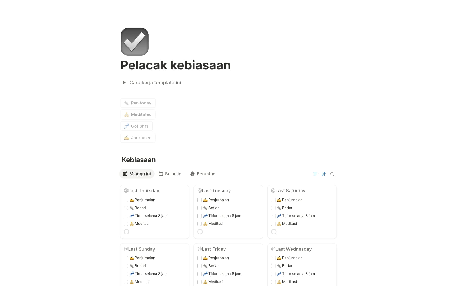 Templat-templat yang saling kompatibel. Dipilih khusus oleh Notion untuk mencakup semua bidang kehidupan dan pekerjaan Anda.