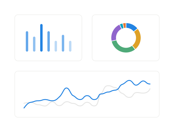 Choose between a bar, line, or donut/pie chart. Change colors, axis names, data labels, and more.